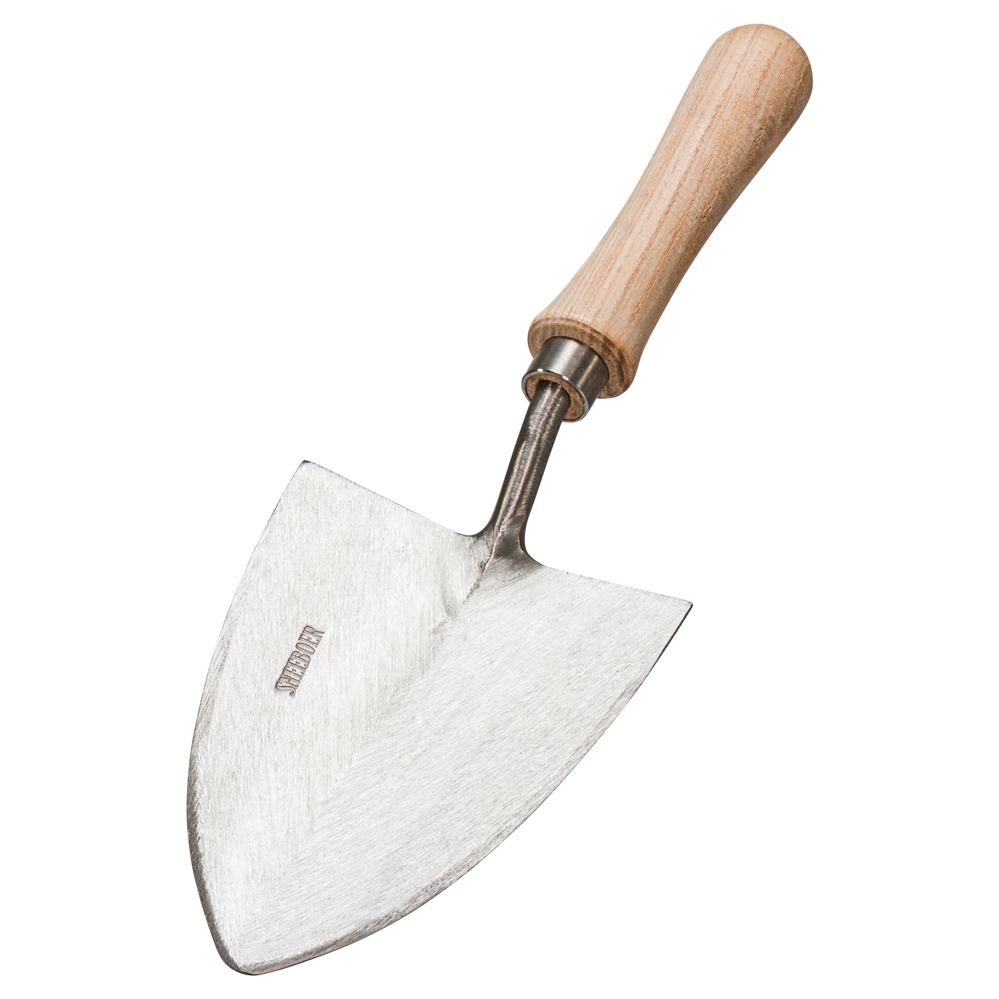 Die Arends-Kelle (auch Arends-Handspaten genannt) verfügt über ein breites, konisch zulaufendes Blatt, mit dem sich mühelos perfekt geformte Pflanzlöcher ausheben lassen. Das breite Blatt ist leicht gebogen, so dass es auch zum Schaufeln von Material verwendet werden kann. Der Hals, der das Blatt mit dem Griff verbindet, ist so geformt, dass das Gerät auch über einen längeren Zeitraum verwendet werden kann, ohne dabei die Handgelenke zu sehr zu belasten.