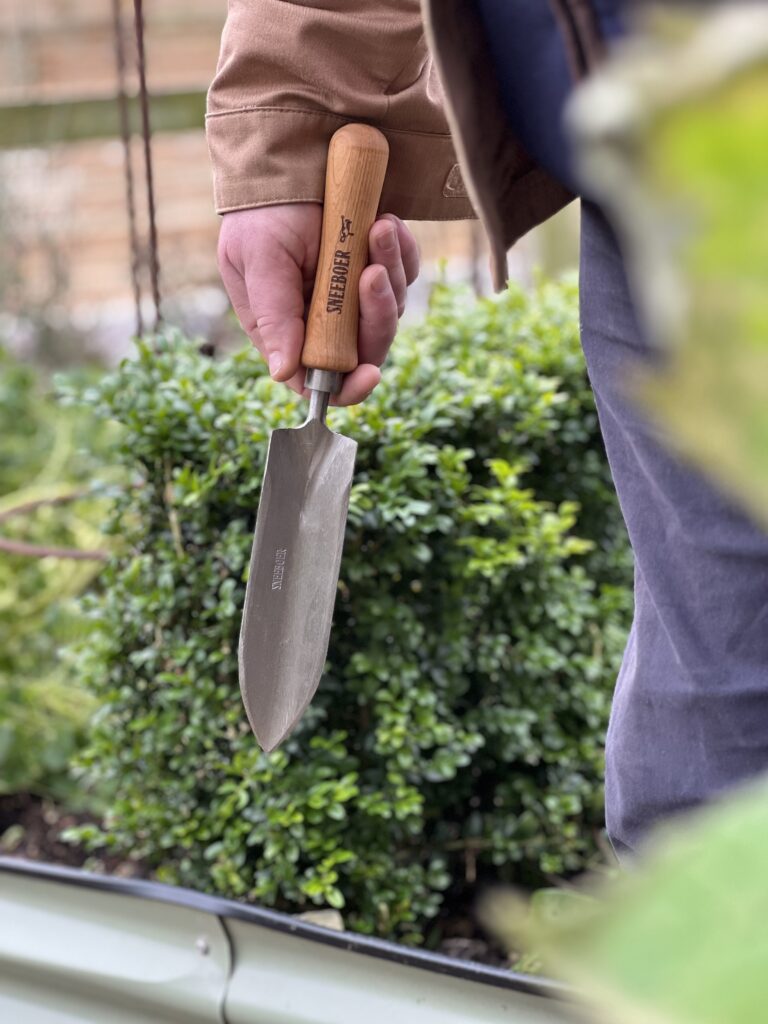 Cette petite pelle à désherber est utilisée principalement pour les racines pivotantes dans le sol sableux ou le sol tourbeux. Elle est aussi pratique pour la cultivation des petits bulbes. Avec un manche en bois de cerisier.