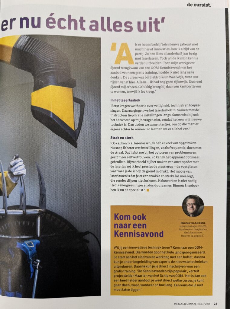 Bij Sneeboer streven we ernaar om het beste tuingereedschap ter wereld te maken – gereedschap dat generaties lang meegaat. Dat vraagt niet alleen om traditioneel vakmanschap, maar ook om voortdurende innovatie. Educatie, veiligheid en technologische vooruitgang vormen daarbij de kern van ons ambacht. Een prachtig voorbeeld hiervan is het werk van Stijn Duijn, onze specialist in laserlassen en lasersnijden. In september 2025 schitterde hij in Metaal Journaal als “de cursist” – een erkenning voor zijn gedrevenheid en expertise in moderne productietechnieken.